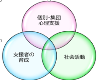 支援者の育成:主に心理専門職を目指す方・現職の方の研修を行います。スーパーヴィジョン・事例検討会・研究会・セミナー、心理学に関する講座・カウンセリングに関する情報提供
